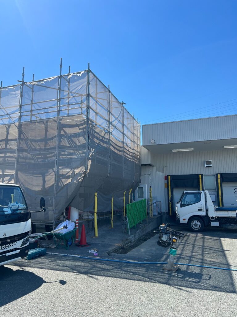 本日の作業内容は建屋残り塗装用足場組立