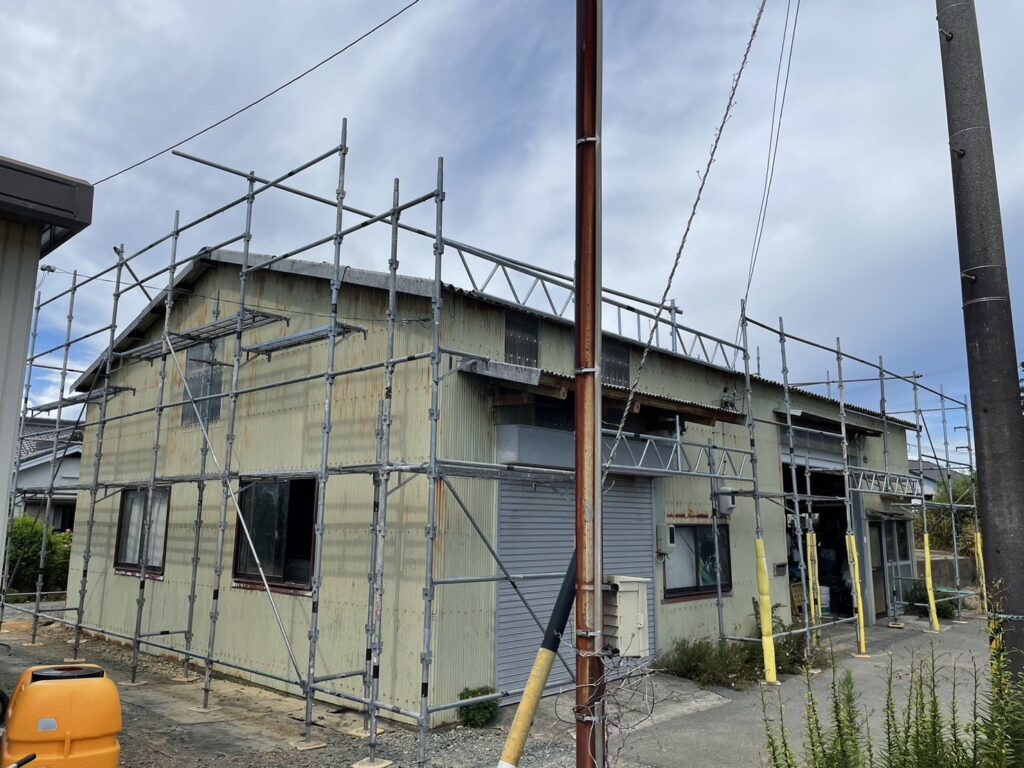 ①農業用倉庫板金工事用足場組立