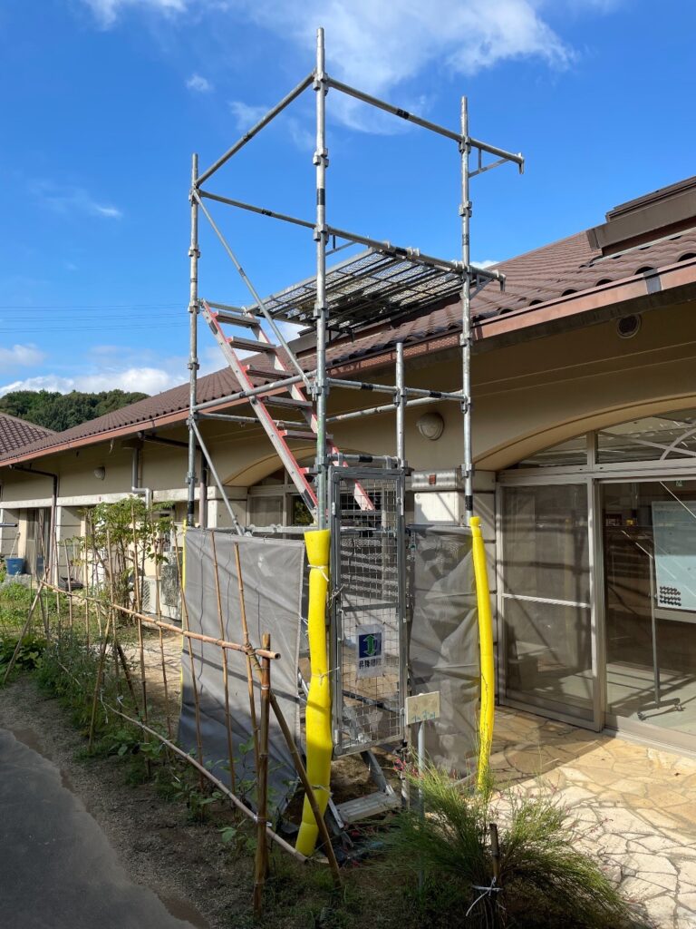 屋根修繕用昇降足場2箇所組立
