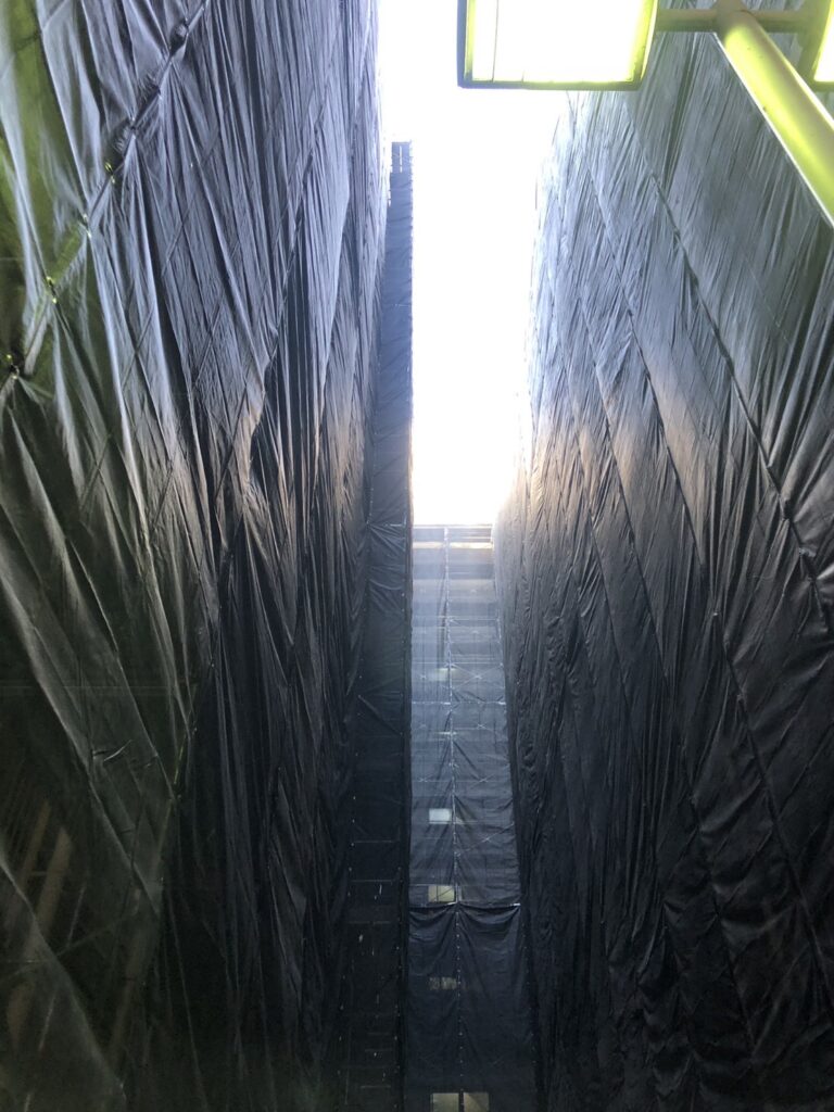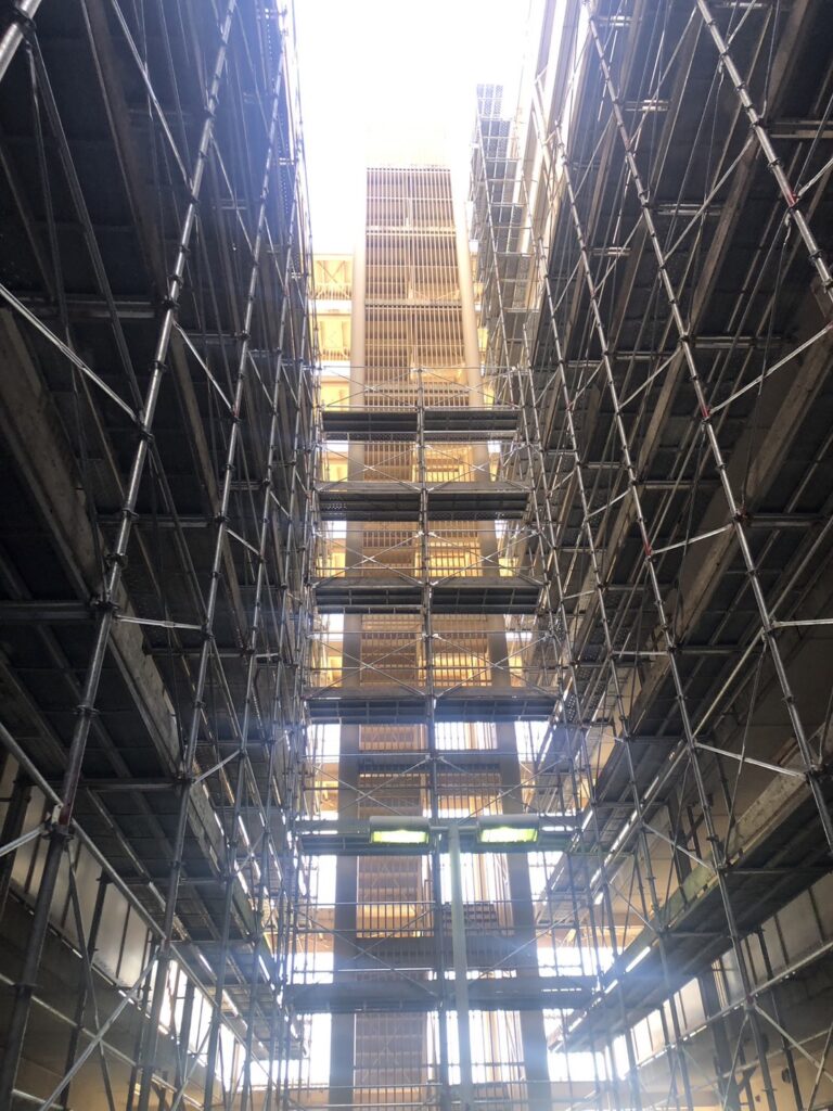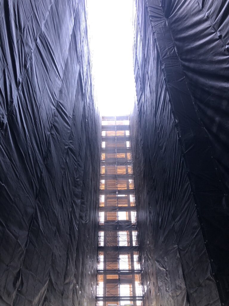 初日 中庭吹抜けより着工
