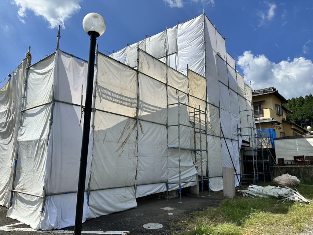 3F建 歯医者兼自宅の解体工事用の養生足場